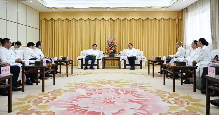 签约前,冯飞、刘小明会见周洲、殷长波一行,双方围绕促进产业升级、推动项目落地、文旅融合发展、深海资源开发利用、人才交流等领域合作进行探讨交流。