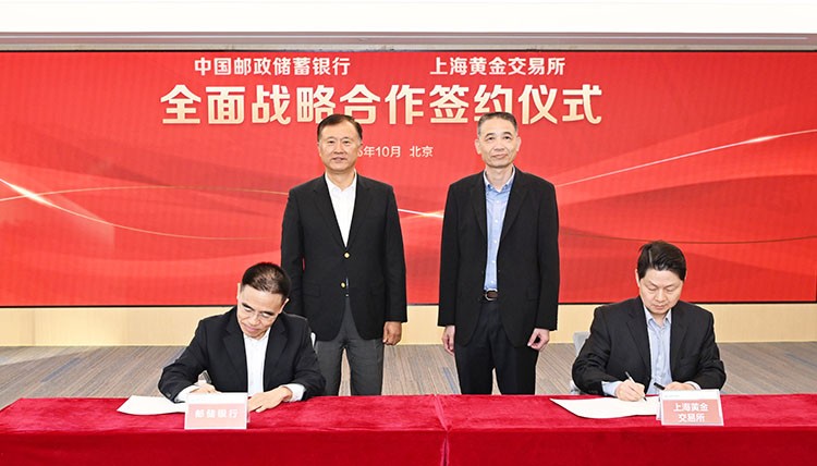 10月21日,中国邮政储蓄银行与上海黄金交易所在京签署战略合作协议。邮储银行行长刘建军、上海黄金交易所理事长余文建见证签约仪式,邮储银行副行长徐学明、上海黄金交易所副总裁马林分别代表双方签署合作协议。