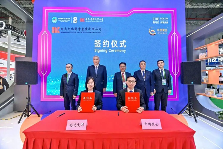 11月5日至6日,中国黄金集团有限公司党委书记、董事长周洲前往上海参加第八届中国国际进口博览会,出席中国黄金集团黄金珠宝股份有限公司与南光文化创意产业有限公司战略合作协议签约仪式,并前往中国黄金集团(上海)贸易有限公司和中金健康科技(嘉兴)有限公司调研。