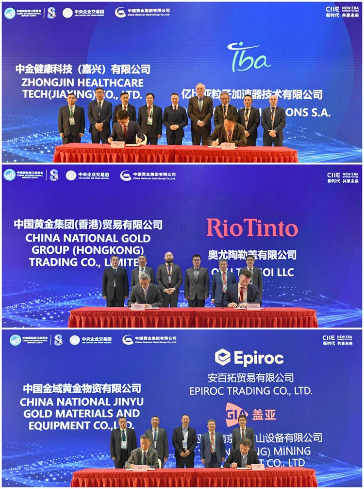 11月7日下午,中国黄金集团有限公司与七家国际化企业集团在第八届中国国际进口博览会现场集中签约,采购总金额9.73亿美元。