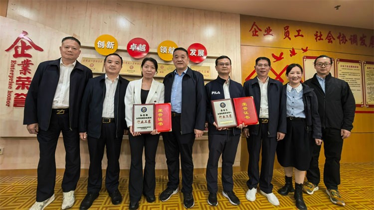 集团公司工会主席刘文洪、副主席邓干彬,工会委员张其万、熊辉昌、郭卫兰为两位“行业工匠”颁发证书及牌匾。
