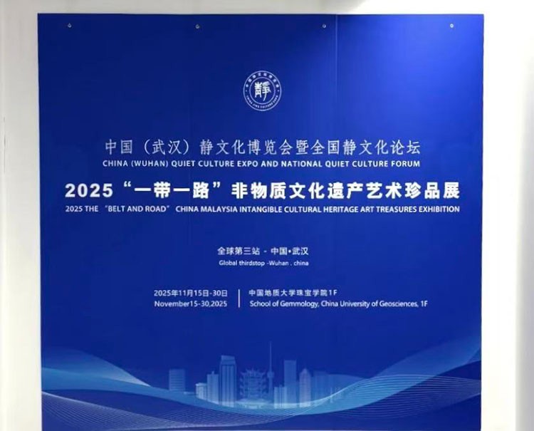 第三届中国静文化博览会重要单元——2025“一带一路”非物质文化遗产艺术珍品展于2025年11月15日至30日在中国地质大学(武汉)珠宝学院一楼展厅隆重展出。本届静博会以“静观天下,文明互鉴”为主题,推动中华优秀传统文化的传播与交流。