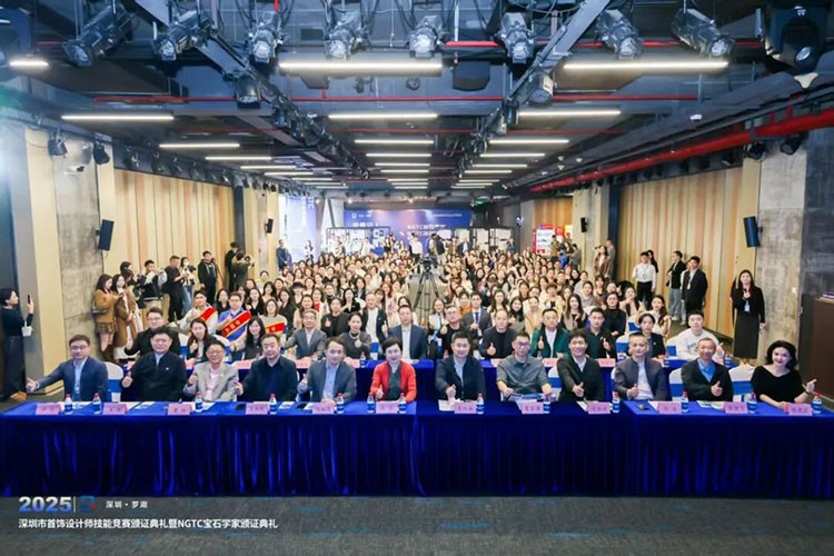 近日,“溢彩流光 智创未来”2025年深圳市首饰设计师技能竞赛颁证典礼在深圳市罗湖区金展珠宝广场隆重举行。本次活动由NGTC珠宝国检集团培训中心主办,深圳市总工会、罗湖区总工会等多个单位指导支持,汇聚了近200名行业领袖与技术精英,共同见证珠宝设计领域新生力量的荣耀诞生。