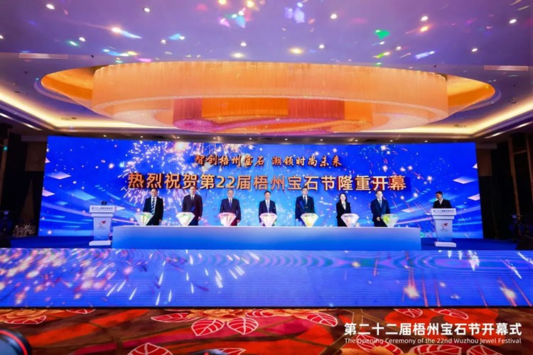 12月19日,由梧州市人民政府、中国珠宝玉石首饰行业协会(以下简称“中宝协”)、广西国际博览事务局联合主办的第二十二届梧州宝石节在广西壮族自治区梧州市正式开幕。中宝协会长叶志斌,中宝协副会长、秘书长毕立君,梧州市委书记蒋连生,梧州市政协主席黄振饶,梧州市委副书记、市政府常务副市长汪东明等领导,以及来自广州、梧州、青岛、番禺、义乌、东莞等地协商会代表、企业代表近300位嘉宾出席开幕式。