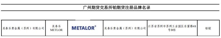 美泰乐贵金属成功获批广州期货交易所铂金期货品牌交割商资质认证