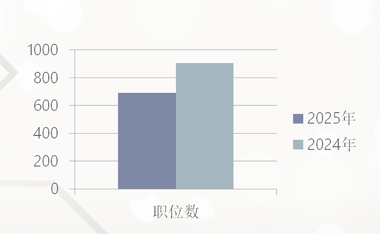 2025年,作为统计样本的100家招聘单位,发布职位数692个,同比2024年职位数904个,下降212个,降幅达到23.45%。