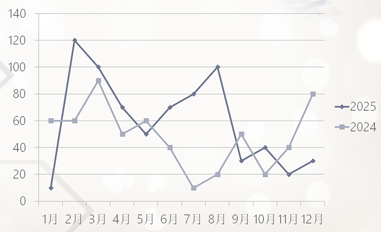 2025年1—10月,10个月中有7个月珠宝行业招聘指数高于去年同期。珠宝行业招聘市场风起云涌,珠宝行业上市企业、龙头企业、知名品牌、服务机构,如: 珠宝批发零售企业(老凤祥、周大生、甘露珠宝、吉盟珠宝等)、首饰生产、制造、加工企业(六福珠宝、星光达珠宝、翠绿首饰、美瑞德珠宝等)、珠宝鉴定机构(吉尔德、北京国首、深圳国检等),提供了大量的职位。2025年11月,黄金税改新政正式实施,珠宝行业招聘指数降至冰点。而许多珠宝专业高校都是在11月举办毕业生校园双选会,组织珠宝企业到校招聘,难度应该比往年大了很多。2025年12月珠宝行业招聘指数30,环比11月招聘指数20有所增长。“冬天来了,春天还会远吗?”让我们一起迎接2026年春天的到来。