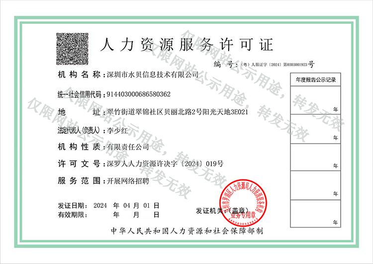 人力资源服务许可证编号:(粤)人服证字〔2024〕第0303001923号