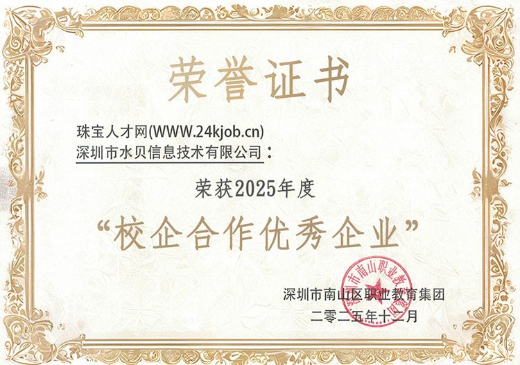 珠宝人才网(www.24kjob.cn)是经深圳市罗湖区人力资源局和广东省通信管理局批准成立的珠宝行业人才招聘网站,是深圳市金银珠宝创意产业协会珠宝行业人才战略合作机构,深圳市博伦职业技术学校(深圳市珠宝学校)实训实习基地,深圳市南山职业教育集团常务理事单位,荣获2020年度中国地质大学(武汉)珠宝学院就业创业最突出贡献平台,荣获2025年度深圳市南山职业教育集团校企合作优秀企业称号。