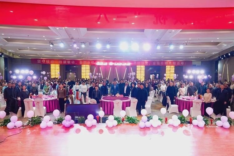 阳春三月,万物竞发。3月8日下午,金箔集团2026年“三八”国际妇女节庆祝大会在金元宝大酒店精彩启幕。来自金箔家族各条战线的300余名女职工代表满怀喜悦,欢聚一堂,共同庆祝属于自己的节日。集团党委书记、董事局主席江楠,副主席江山,总裁耿胜,董事局成员李莉、唐卫军、王建、孙敏亮、陶绪友出席大会,各板块集团“三驾马车”、总部挂牌干部,以及集团党委、工会、女工委、团委成员齐聚一堂,与女职工代表共度温馨时光。