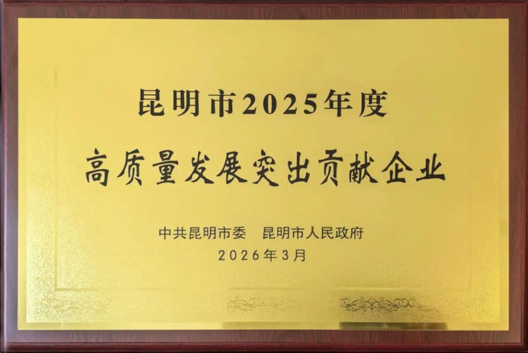 近日,昆明市“当好排头兵”高质量发展暨重点产业链发展工作推进会议上,云南黄金集团滇金国际工贸有限公司被授予“昆明市2025年度高质量发展突出贡献企业”荣誉称号。