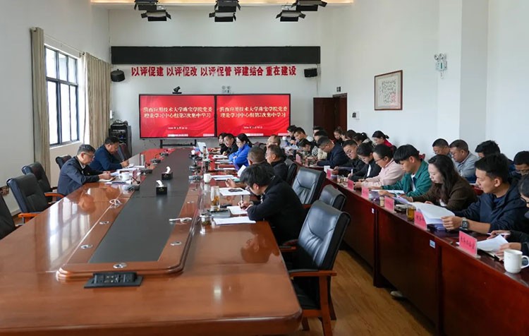 近日,滇西应用技术大学珠宝学院召开党委理论学习中心组2026年第二次集中学习,会议围绕“深学细悟全国两会精神,锚定应用型高校办学定位,抓实本科合格评估反馈问题整改,以高质量党建引领学院高质量内涵式发展”主题,深入学习习近平总书记在全国两会期间的重要讲话精神、政府工作报告中关于教育的部署,以及本科合格评估整改工作要求,推动学院内涵式发展。