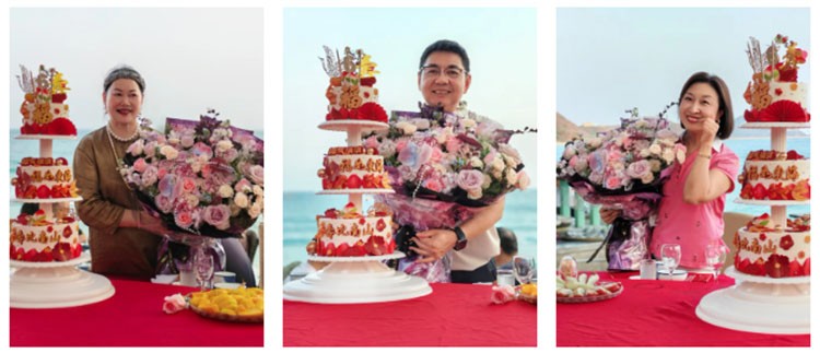 海风轻拂,东海之畔,承载着美好祝福的鲜花与蛋糕整齐摆放于桌前,取“福如东海,寿比南山”之祥瑞寓意,这场相聚更添一份意义与温情。现场氛围温馨融洽,欢声笑语不绝于耳,暖意漫溢在每一个角落。大家围坐相伴,纷纷送上最真挚的生日祝福,也向同行的每一位家人致以诚挚问候,感恩彼此一路以来对协会工作的鼎力支持与默默陪伴,更感念考察途中互帮互助、彼此包容的深厚情谊。