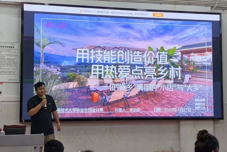 李治衍学长在校期间曾斩获天工奖、云南省工美杯等多项专业大奖,同时担任学生会主席。他以“用技能创造价值,用热爱点亮乡村”为主题,分享了自己扎根县域、经营咖啡馆与文创工作室的创业故事,并寄语同学们,乡村小城与城市同样机遇广阔。大学生涯要勇于尝试、重视积累,立足专业、脚踏实地,以微小切口深耕细作,用一技之长服务地方发展。