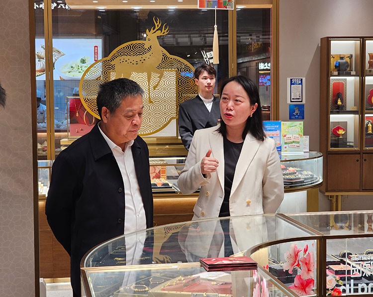 在沪期间,还到中国黄金中环百联店实地考察,与上海黄金有限公司党委书记、执行董事苏艺萌进行交流,深入了解公司业务布局、品牌运营及市场拓展等情况。