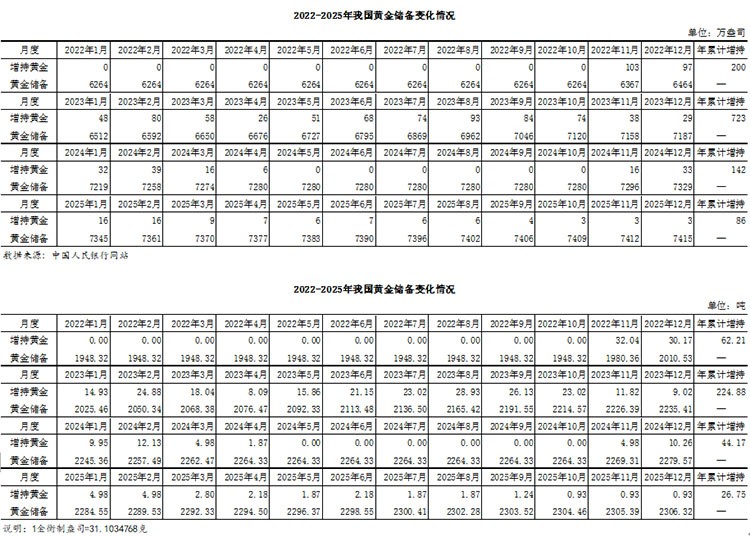 当前位置 首页 > 珠宝新闻 > 珠宝行业 > 珠宝市场 > 2025年12月,我国增持黄金0.93吨