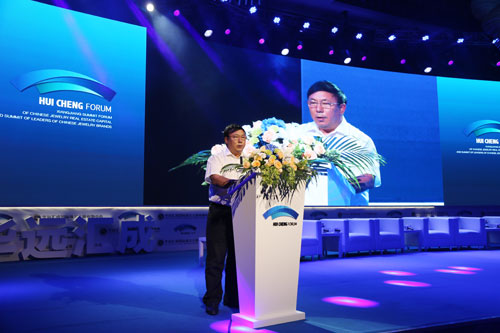 孙凤民、何报翔、冯仑、杜凤超分别致辞。孙凤民在致辞中说,十八大以来,中国经济发展逐渐转入了一个中高速发展的新常态。珠宝业经过二十多年的快速发展,珠宝生产产能过剩、珠宝市场相对过剩、终端市场过剩,这是长时间、规模化、快速发展不可回避的现实。珠宝行业消费趋于理性,是大众化、个性化、常态化消费市场的良性回归。可喜的是,中国珠宝市场潜力巨大,每年消费5000亿元的大盘子,会支撑珠宝产业的健康发展。