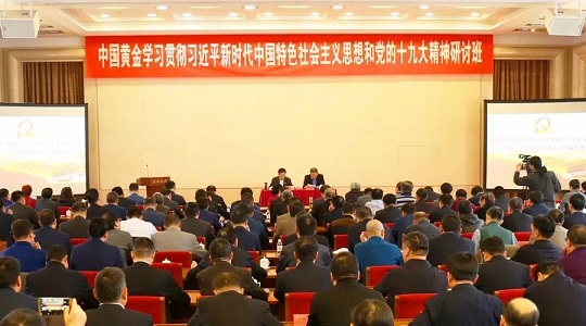 3月25日,中国黄金集团有限公司学习贯彻习近平新时代中国特色社会主义思想和党的十九大精神研讨班在北京开班。举办这次研讨班,目的是深入学习贯彻习近平新时代中国特色社会主义思想和党的十九大精神,用其武装头脑、指导实践,以推动集团公司的改革发展、质量变革工作。