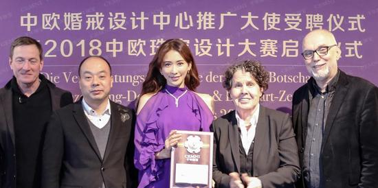 当地时间3月22日下午14:00,CEMNI千年珠宝携新一代“薰衣草婚戒”亮相普福珠宝博物馆的捐赠仪式现场,千年珠宝董事长李勇先生、普福文化市长Sibylle Schüssler和普福250周年庆典文化策展人Gerhard Baral共同出席。在仪式上林志玲小姐作为千年珠宝代言人受聘为“中欧珠宝文化交流中心大使”,并启动2018中欧珠宝设计大赛,其主题“我的时尚,我的婚礼”。