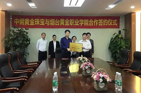 为响应国家关于加强学校和企业合作的号召,充分发挥高校与企业双方优势及高等教育,更好的为社会、为企业培养高素质、高技能的应用型人才,践行中钢黄金珠宝“强国富民”的企业文化,日前,由中钢黄金珠宝(深圳)有限公司与烟台黄金职业学院共同举办的“校企人才战略合作签约仪式暨实训就业基地挂牌仪式”在中钢黄金珠宝总部召开。