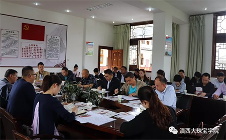 张雷书记介绍了珠宝学院校园建设、专业建设、办学目标、发展方向等基本情况。张书记表示:滇西大珠宝学院围绕保山和腾冲重点优势产业发展需求,以珠宝专业为核心,以“珠宝+运动”、“珠宝+健康”、“珠宝+文化”、“珠宝+旅游”拓展专业发展,瞄准新经济时代消费升级对人才的需求,辐射带动周边,重点打造珠宝文创、运动健康、旅游管理三个专业群,以高校为平台,实现技术、专利的成果转化,使珠宝学院—职教园区及周边形成教育医疗、运动休闲、文化艺术、研学旅行及创新创业五个中心,努力成为云南省面向南亚东南亚的重要人文交流基地;同时,学院根据国务院《深化产教融合的实施意见》的要求,加强校企合作,把企业引入学校,直接服务产业,加强市场对接。