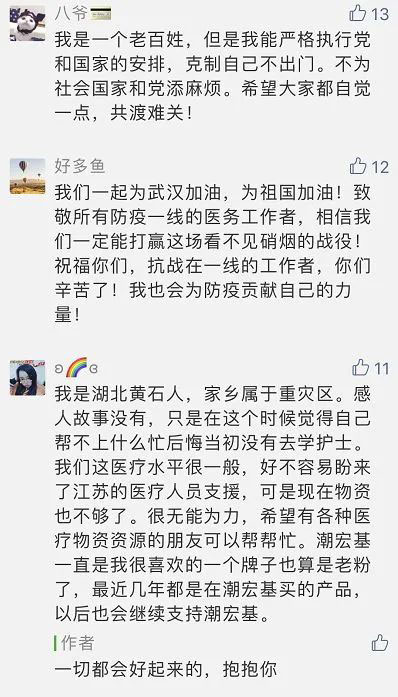 潮宏基在全国拥有超过1000家门店,会员遍布全国各地各行各业。潮宏基征集了百万“潮粉”在一线抗疫的真实故事,得到了热烈的反响:一条条留言,一道道评论,折射出疫情之下的爱情、亲情、友情,人性光辉闪烁其间,潮宏基自豪于“潮粉”中的平凡英雄,更要向华夏子弟万众一心的精神致敬。