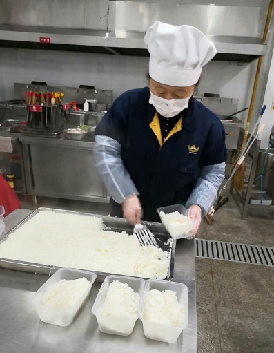 为了充分保障教职工就餐安全,避免交叉感染,她积极吸纳同类院校的经验做法,对教工食堂的就餐形式进行了调整,设立体温检测区、人员进出消毒区、排队等候等候区等,最大限度保障员工就餐安全。她还让食堂给教职工准备了打包袋、打包盒,打包带走更安全,从细微处做好服务,给假期防控人员送上了一份温情。
