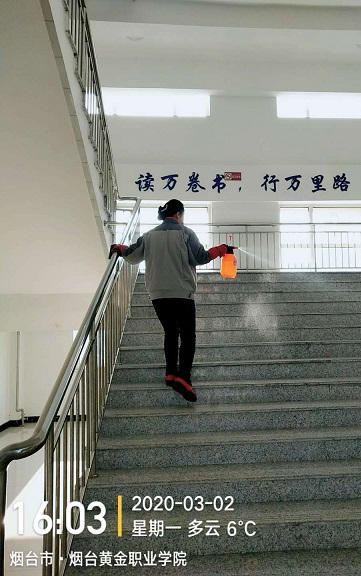 学院消毒工作,是切断疫情传播的重要环节,她组织物业人员学习《酒精使用规范》,《公共场所消毒指南》等多个文件,并进一步细化责任,要求人员到位、消杀到点、责任到人;每天两次校园消杀,记录齐全有痕可查。为了有效监督消杀工作的效果,她还要求物业人员每天上传重点部位消杀照片,照片上必须有清晰的时间标识。有责任,有措施,消杀工作真正落到了实处。