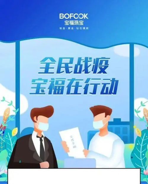 疫情面前,宝福珠宝积极响应政府号召,多次延迟公司复工时间,严格落实疫情防护政策。在通过复工核查后,仍根据疫情变化,不冒险,不急进,实行分批有序复产复工和弹性办公机制。