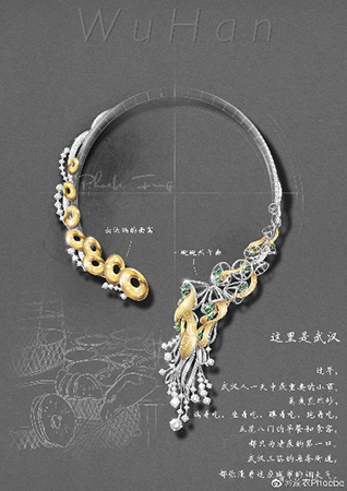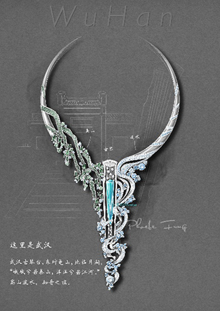 面对突如其来的疫情,珠宝学院GIC首饰设计(手绘)教师方龙慧子通过创作《这里是武汉》系列珠宝设计作品表达了特殊时期里武汉的美好。