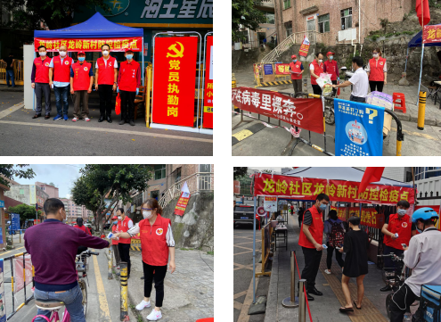 活动当天由党员、团员组成的央创时尚志愿服务队准时到达龙岭社区服务中心领取防控物资,经过实地培训演练后,大家分布到龙岭山庄、龙岭新村两个防疫点协助开展工作,负责在社区闸口处“上岗”值守,对进入小区的人员及车辆进行详细的登记询问与体温监测,查看小区居民深i程序自主申报情况,对返深人员活动轨迹进行扫码查询并认真做好信息登记,发放防疫安全知识宣传页,并耐心劝诫社区居民做好防护措施,减少出行。活动现场大家身穿红马甲用实际行动构筑起抵御疫情的红色防线,当好住宅小区“守门员”,坚定初心使命,充分发挥党员先锋模范作用。