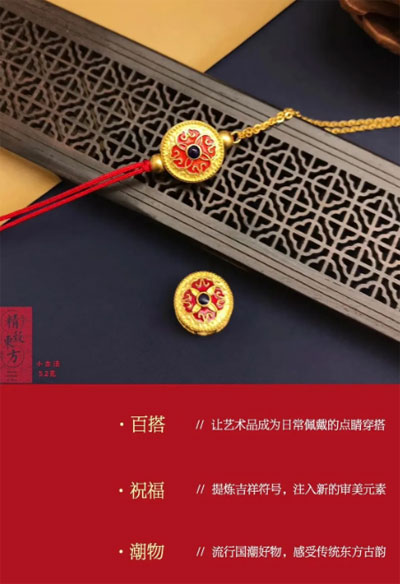 招金银楼作为中华老字号民族珠宝品牌,其本身就是由中国水土孕育而出、与中华文化相辅相成。多年来,招金银楼始终秉承一颗赤诚的匠心,不断深研中华文化,将黄金珠宝首饰雕琢成文化的载体,并将传统文化中所蕴含的精神融入珠宝设计,用手中的产品,演绎千年金脉文明的纯臻,从历史文化长河中汲取品牌精深发展的资源和智慧。