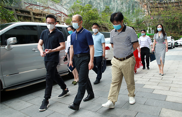 深圳市工商业联合会深圳市总商会党组成员、专职副主席谢振文(前中),盐田区委统战部常务副部长、工商联常务副主席李接贤(前右)等领导一行调研百泰集团复工复产情况