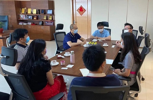 谢振文副主席对百泰的复工复产工作表示认可与肯定,并就黄金珠宝行业的产品工艺设计、自主知识产权保护等行业发展问题,及疫后市场的消费变化、发展趋势、经营模式等与周灿坤董事长进行了交流与探讨。