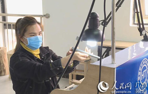 培训班里,学员正在学习首饰制作技术。平桂区委宣传部供图