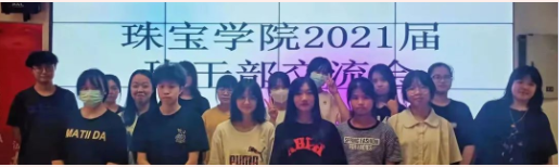 2021年9月22日晚,由珠宝学院19首饰J4班的耿浩和18首饰G5-1班的钟杜萍为新生班干部讲解各班委岗位职责以及作为学生干部的经验交流。